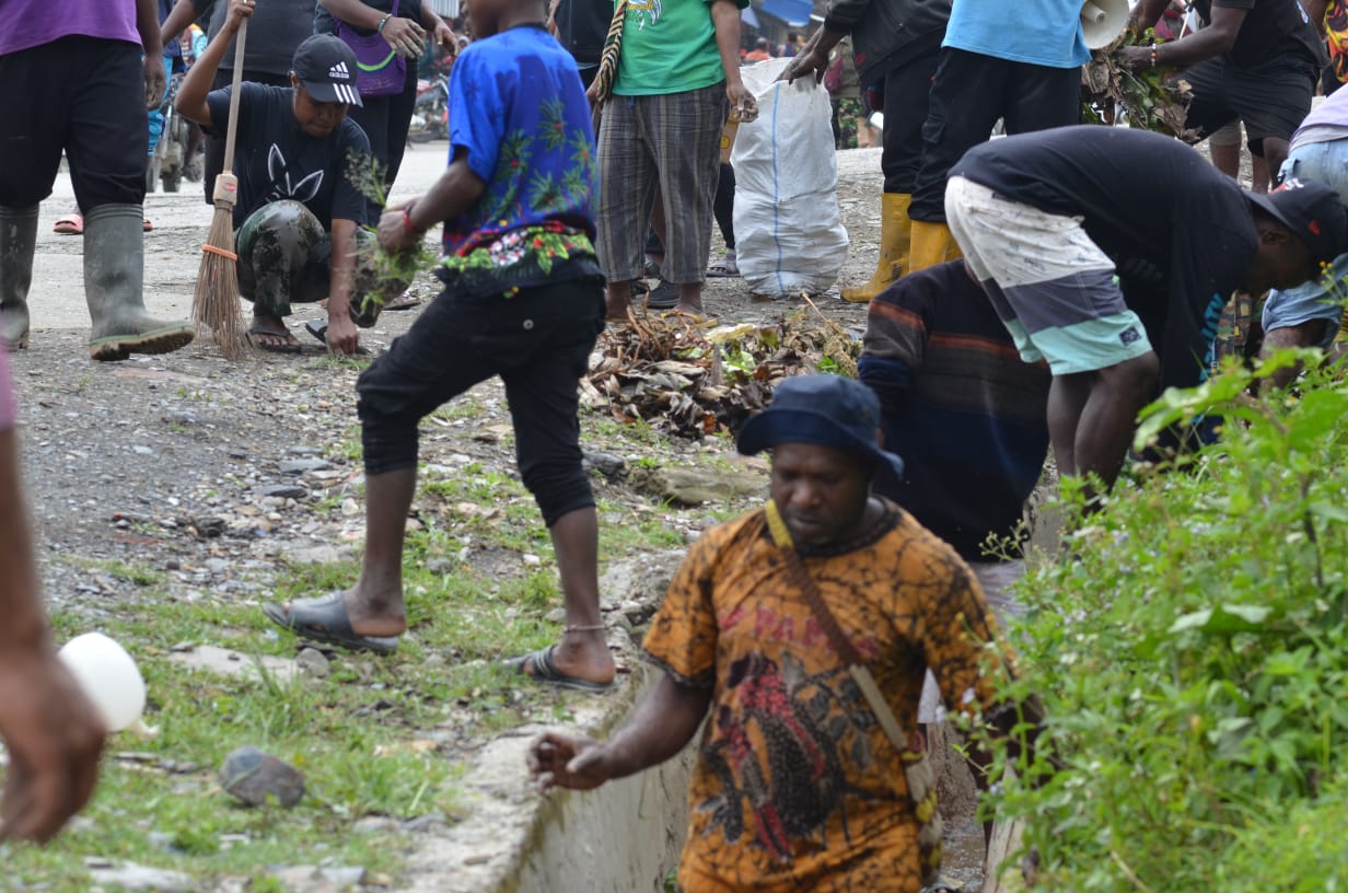 Sebanyak lebih dari 300 pemuda-pemudi Tolikara, dari tujuh klasis, dengan menyandang sapu lidi, dan ember, mulai menyapu jalan, membabat rumput dan membersihkan saluran air dari sampah yang menumpuk, selama tiga hari berturut-turut.