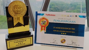 JAKARTA, Bisnistoday- PT BUMI Resources Tbk (BUMI) meraih Bintang 3 dalam Acara Puncak Penghargaan TOP GRC Awards 2021. Ajang Penghargaan tahunan yang diselenggarakan oleh majalah Top Business ini mengambil “The Strategic Role of GRC for Business Continuity in Pandemic Covid-19”.