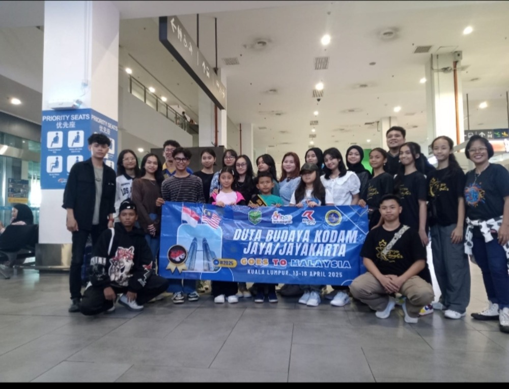 Pimpinan Event Organizer (EO) saat ditemui menyampaikan Team Duta Budaya Kodam Jaya/Jayakarta hasil dari Grand Final Lomba Tari Kreasi Nusantara Piala Pangdam 2024, sebanyak 21 penari, 5 pelatih dan 4 Official, sesuai agenda hari ini berangkat ke Malaysia, ujarnya sesaat sebelum berangkat menggunakan pesawat dari Bandara internasional Soeta tujuan Kuala Lumpur Malaysia, Minggu, (13/4/2025)
