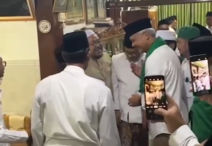 “Saya ke sini bukan sebagai Capres, tapi pulang ke rumah sebagai putra Mbah Moen,” ucap Ganjar, yang disambut dengan tepuk tangan hangat oleh keluarga dan para ulama di Ponpes Al Anwar.