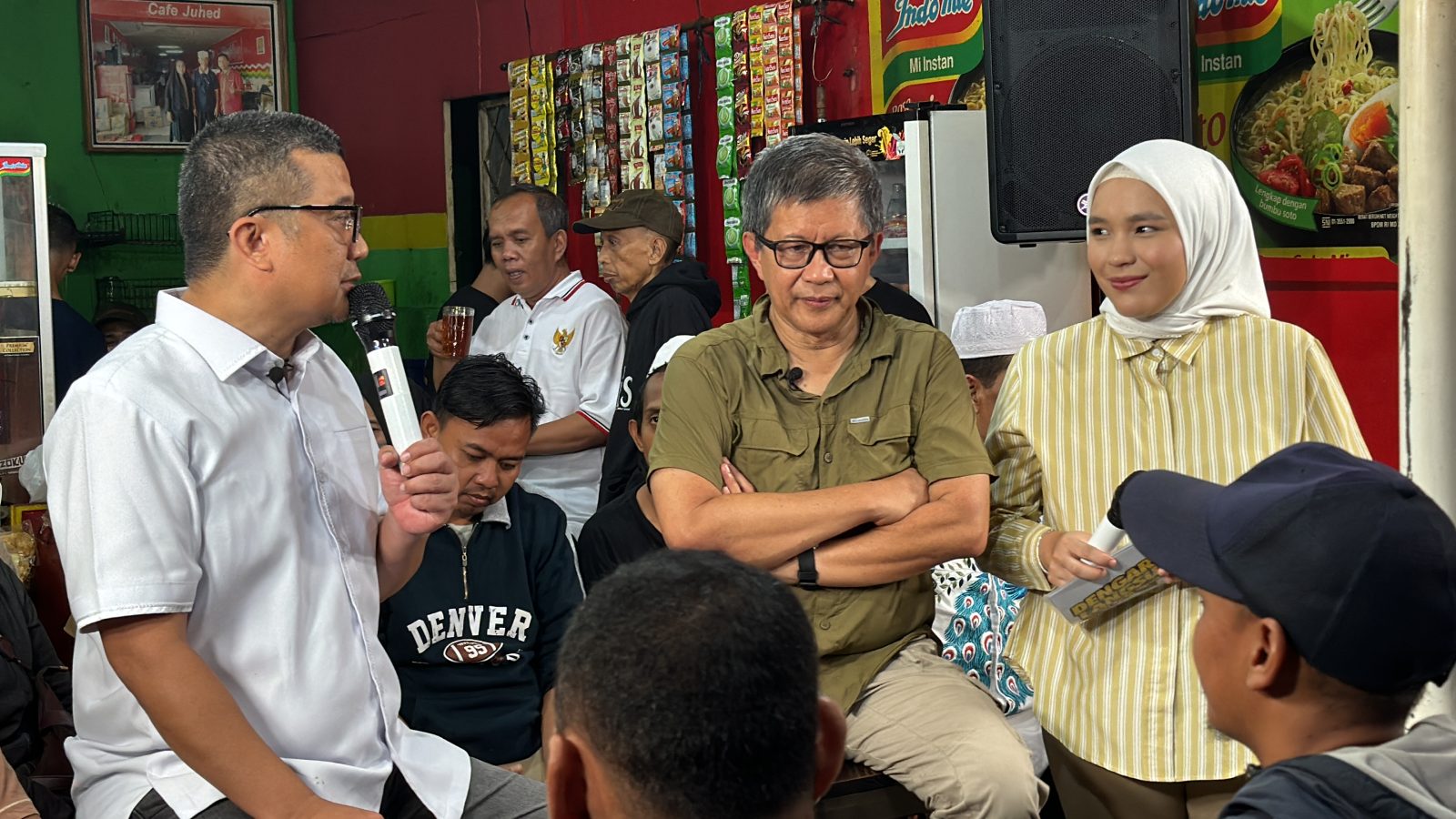 Erwin Aksa (kiri) bersama Rocky Gerung dalam acara talkshow di Jakarta, kemarin