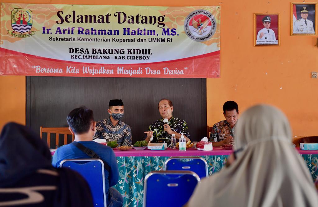 Sekretaris Kementerian Koperasi dan UKM, Arif Rahman Hakim saat melakukan kunjungan kerja ke Desa Bakung Kidul, Kecamatan Jamblang, Cirebon, Jawa Barat, Jumat (24/9).