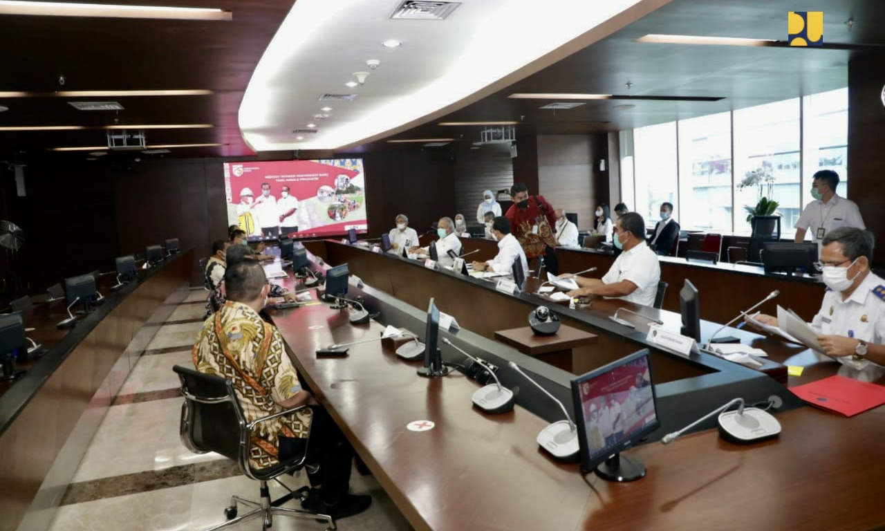 JAKARTA, Bisnistoday – Menteri Pekerjaan Umum dan Perumahan Rakyat (PUPR) Basuki Hadimuljono bersama Menteri Perhubungan (Menhub) Budi Karya Sumadi, dan Kepala Badan Koordinasi Penanaman Modal (BPKM) Bahlil Lahadalia melakukan pertemuan membahas dukungan jaringan jalan nasional yang terkoneksi dengan infrastruktur perhubungan dan kawasan industri, di Kantor Kementerian PUPR, Kamis (22/4). Sinergi antar kementerian bertujuan agar proyek pembangunan infrastruktur dapat segera dimanfaatkan paling lama tahun 2024.