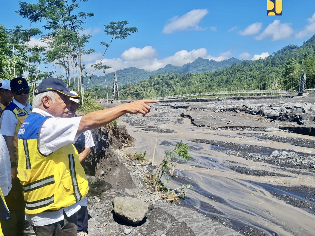 “Kedua, kami bersama pemerintah daerah melihat prasarana yang rusak akibat banjir lahar Gunung Semeru pada Jumat (7/7) minggu lalu. Untuk aspek konektivitas, terdapat lima jembatan yang putus yang harus segera diperbaiki,” kata Menteri Basuki.