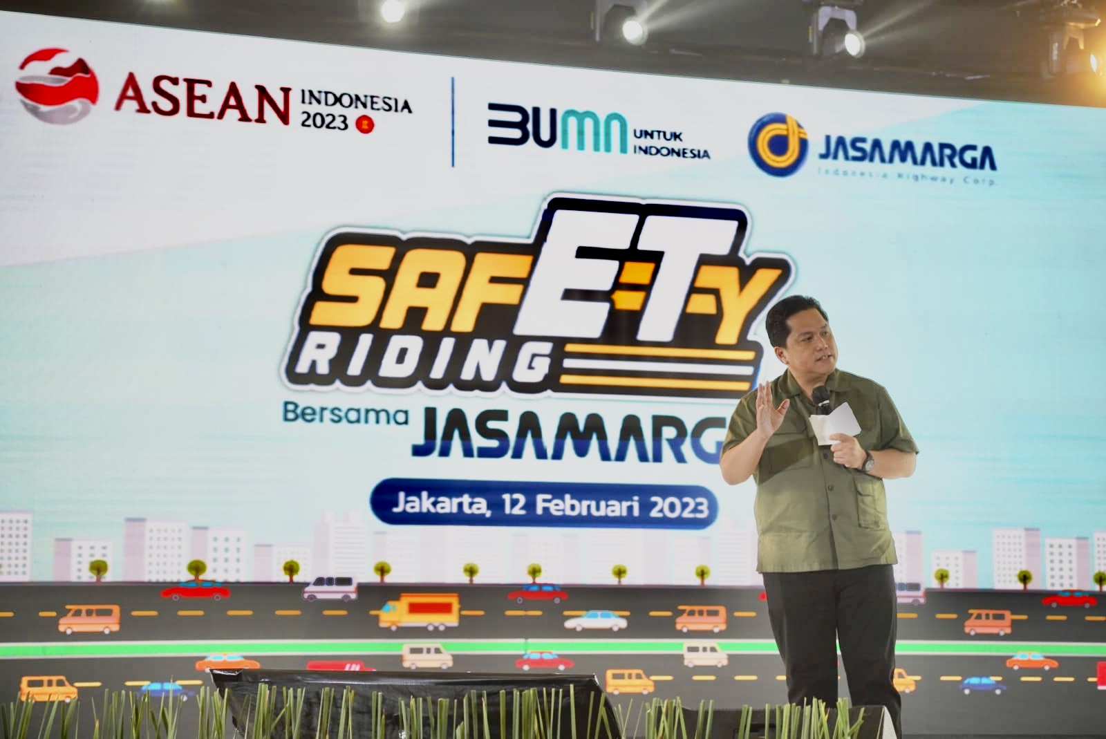 Karena itulah, program safety riding ini sangat penting untuk dilaksanakan kita semua. Generasi muda ini harus kita amankan dan selamatkan dari kecelakaan di jalan, naik motor yang ugal-ugalan hingga tindak kejahatan yang juga harus kita berantas,” ujar Erick saat kegiatan Safety Riding Bersama Jasa Marga ini digelar di Gedung Sasana Kriya, Taman Mini Indonesia Indah, Jakarta, pada Minggu (12/2).