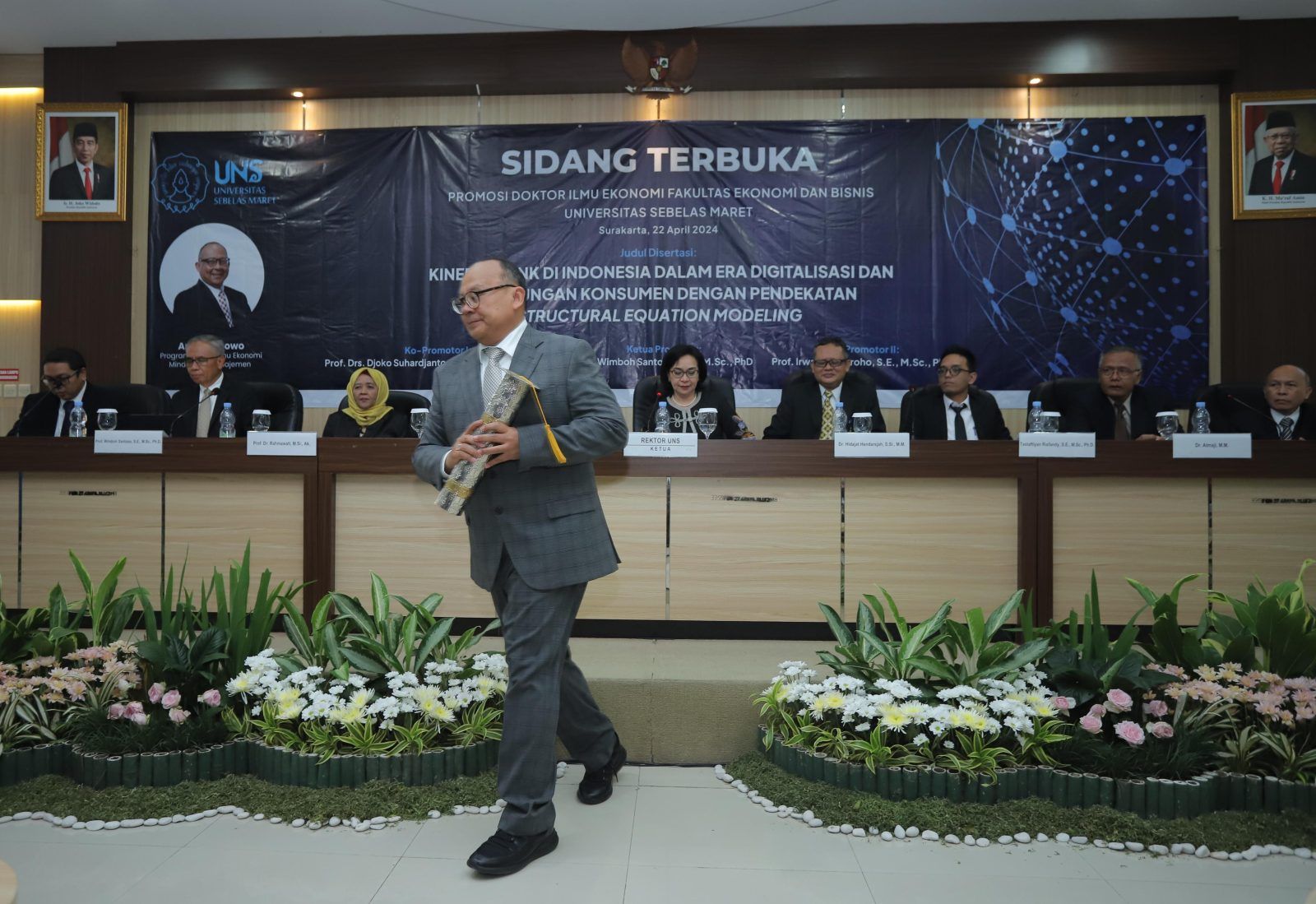 Sidang Terbuka Promosi Doktor Ilmu Ekonomi FEB UNS, Anto Prabowo digelar di Aula Konimex, Gedung 4 FEB UNS, Senin (22/4). Dalam kesempatan tersebut, bertindak sebagai Ketua Tim Promotor, Prof. Wimboh Santoso, SE, M.Sc.,Ph.D., Promotor 1, Prof. Drs. Djoko Suhardjanto,M.Com.(Hons).,Ph.D.,Ak; dan Promotor 2, Prof. Irwan Trinugroho,SE,M.Sc.,Ph.D. Sedangkan untuk Dewan Penguji terdiri dari Dr. Chatarina Muliana, SH, SE, MH