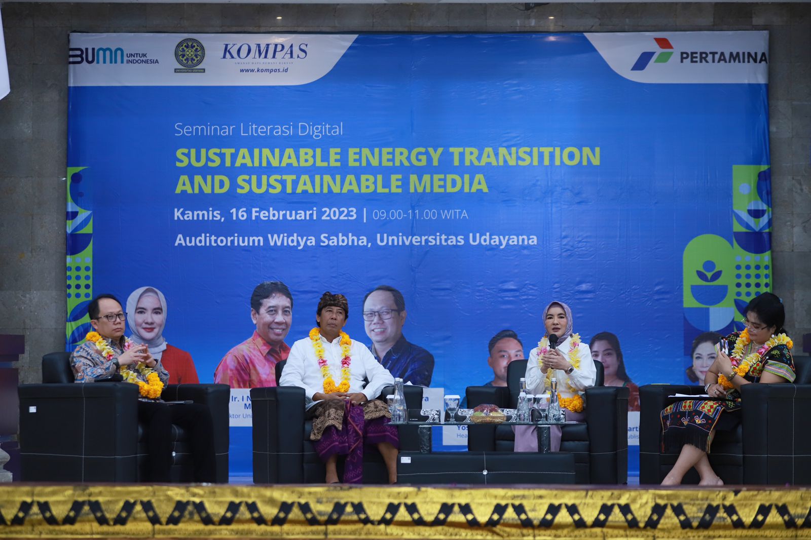 DENPASAR, Bisnistoday – Mengajak generasi muda untuk turut berperan aktif dalam membangun masa depan berkelanjutan, PT Pertamina (Persero) bersama dengan salah satu harian nasional menggelar seminar literasi digital dengan tema “Sustainable Energy Transition and Sustainable Media” untuk mahasiswa Universitas Udayana bertempat di Auditorium Widya Sabha, Bali (16/2).