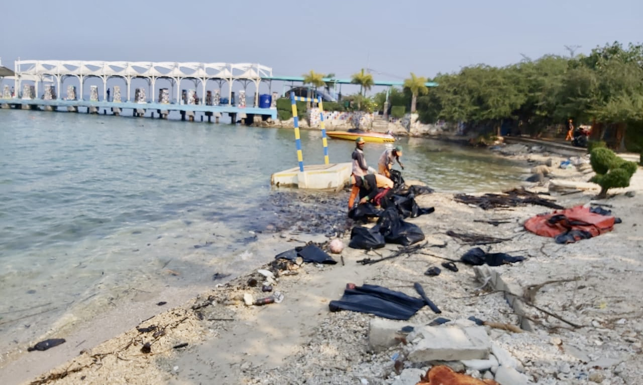 KEPULAUAN SERIBU, Bisnistoday- Merespons laporan adanya anomali lingkungan berupa ceceran cairan berwarna hitam bercampur sampah yang ditemukan di pesisir Pulau Untung Jawa, Kepulauan Seribu, PHE ONWJ intensif berkoordinasi dengan Suku Dinas Lingkungan Hidup Kabupaten Kepulauan Seribu dalam melakukan pembersihan (25/04).