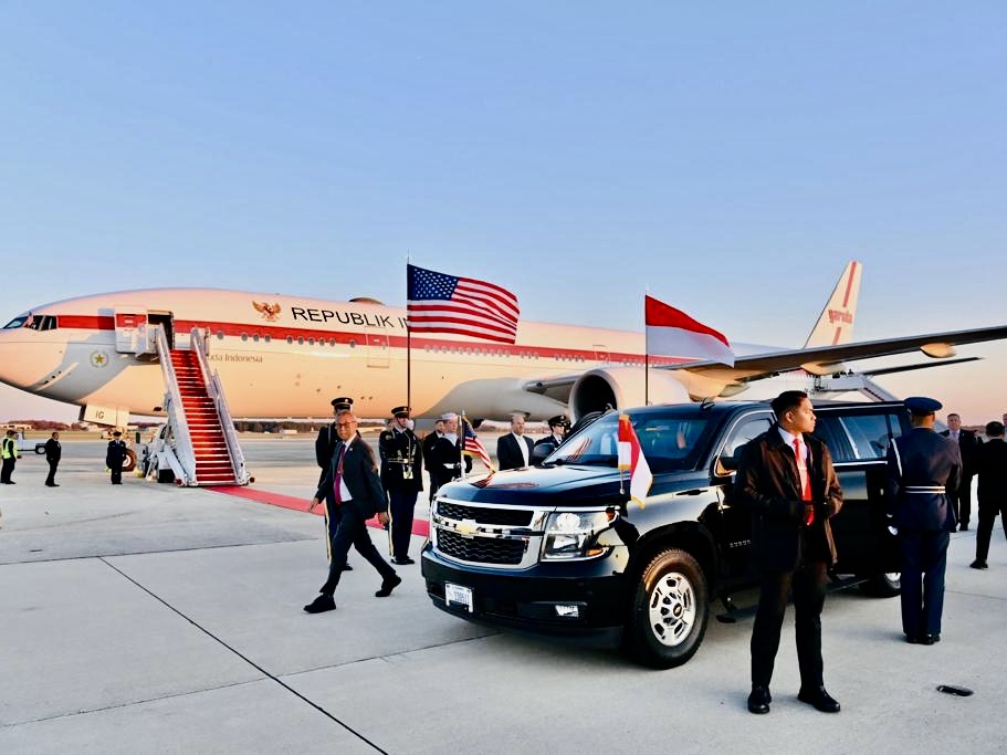PESAWAT KEPRESIDENAN RI, tiba di di Pangkalan Militer Andrews, Washington DC, Amerika Serikat./