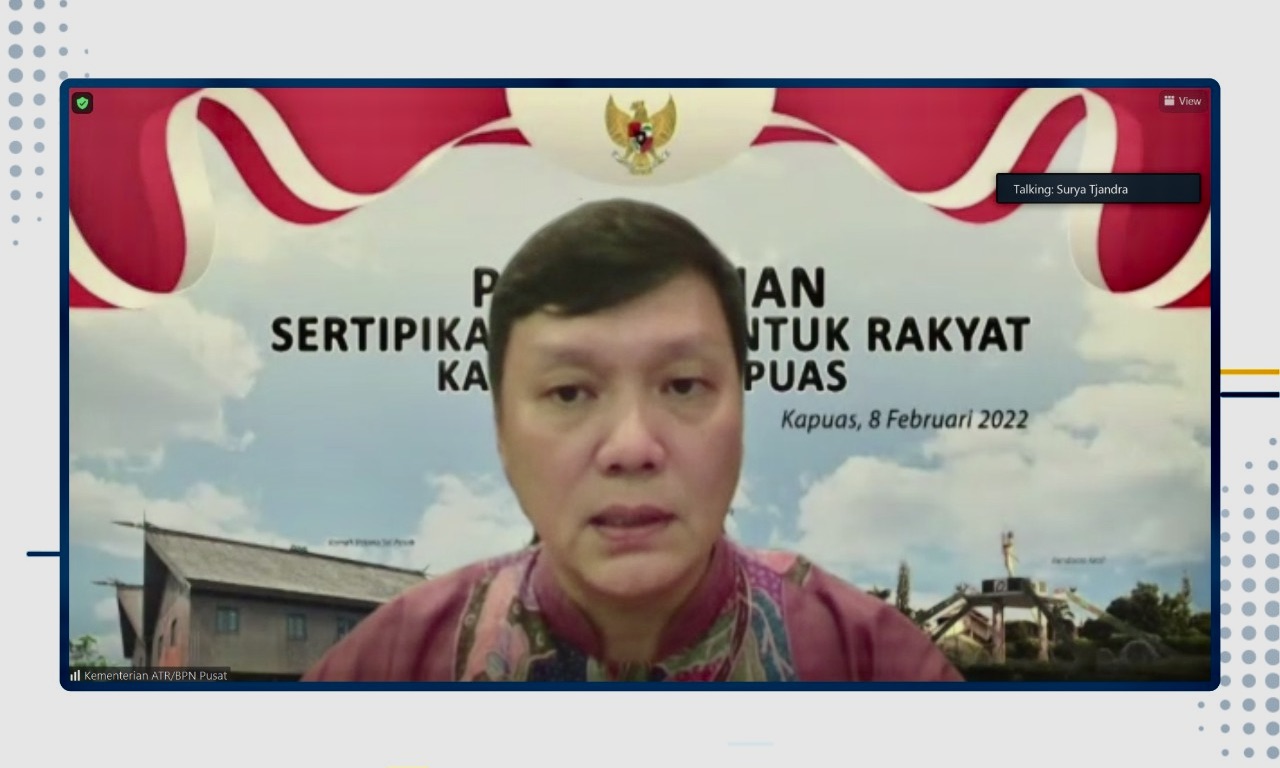 “Itu kira-kira 219.000 lebih bidang, dan sisanya sekitar 20 persen atau 55.000 bidang. Kalau mau kejar setahun 20.000 bidang didaftarkan, mungkin tahun 2024 atau 2025 bisa tuntas seluruh bidang tanah di luar kawasan hutan terdaftar di Kabupaten Kapuas,”ujar Surya Tjandra saat memberi sambutan penyerahan sertipikat tanah kepada masyarakat Kabupaten Kapuas, Provinsi Kalimantan Tengah secara virtual pada Selasa (8/2).