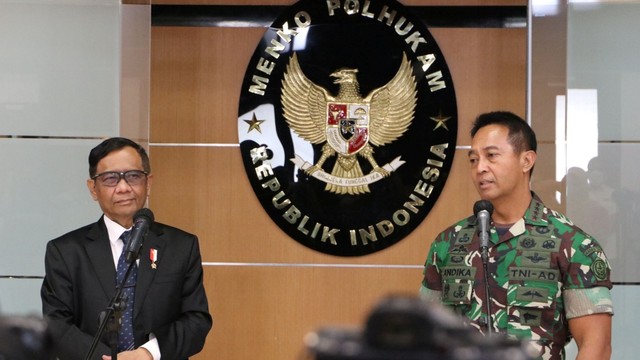 By KH PiliangRabu, 21 Desember 2022, 21:39JAKARTA, Bisnistoday- Panglima TNI Jenderal TNI Andika Perkasa menyambangi Menteri Koordinator Bidang Politik, Hukum, dan Keamanan (Menko Polhukam) Mahfud MD di Kantor Kemenko...