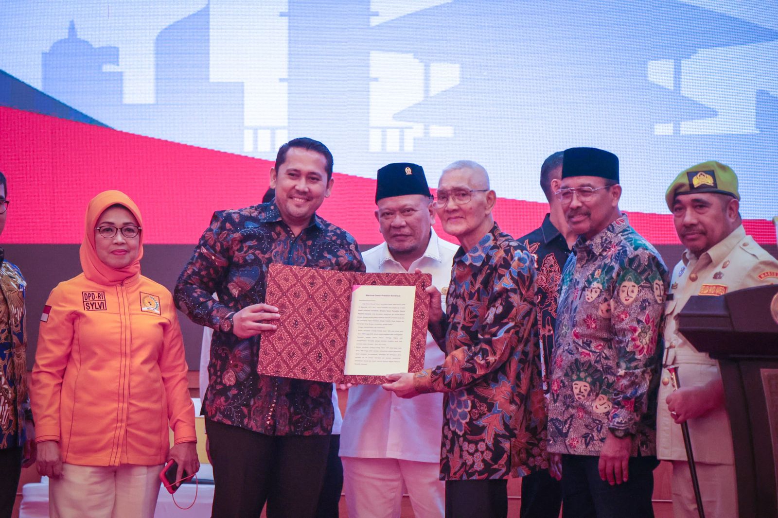 Maklumat yang diserahkan Try Sutrisno dengan didampingi Ketua DPD RI AA LaNyalla Mahmud Mattalitti, Wakil Ketua DPD RI Nono Sampono, Guru Besar Filsafat UGM Prof Kaelan, Ketua Umum PP Pemuda Panca Marga Berto Izaak Doko, Wakil Perempuan Mirah Sumirat, serta wakil Ulama KH Fadholi Muh Ruham, diterima oleh anggota MPR RI, M Syukur (Jambi), Bustami Zainuddin (Lampung), Alirman Sori (Sumbar), Bambang Santoso (Bali), Fachrul Razi (Aceh) dan Sylviana Murni (DKI Jakarta).